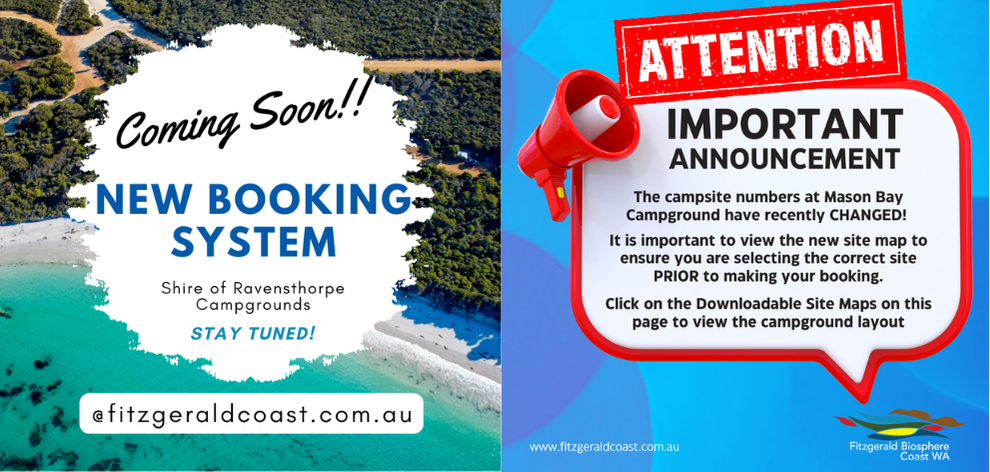 To help improve the visitor experience the Shire of Ravensthorpe has changed the way Starvation Bay, Mason Bay and Hamersley Inlet campgrounds are managed. Now you must plan and book ahead your campsite through our new online booking system hosted by SpacetoCo.com.